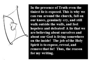 Geared to women, don’t think that this book excuses the men in our society and their need for identity. When truth is revealed, it applies to men also. But for now, let’s focus on how we women can allow the Holy Spirit to get inside our heads and hearts to lead us out of this spiritual identity crisis our culture has lured us into.